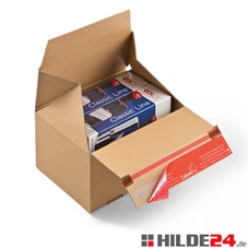 Dank des vollautomatischen Bodens sind die Euroboxen, die durch Einhaltung der US-Safetynorm einen Verletzungsschutz bieten, innerhalb weniger Sekunden aufgebaut. Der Selbstklebeverschluss erleichtert und beschleunigt den Packprozess ebenfalls und durch den Aufreißfaden können auch die Empfänger der Euroboxen diese schnell und einfach öffnen.
