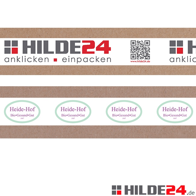 individuell mit 1-4 Farben bedrucken lassen. Das bedruckte Packband erhalten Sie in den Farben weiß, braun oder transparent. Es weist eine hohe Reißfestigkeit und Klebkraft auf.