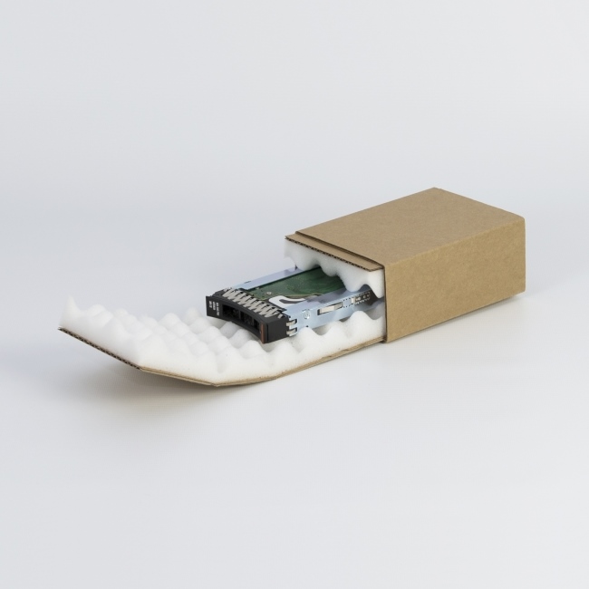 Der stabile Umkarton besteht ebenso wie die Außenseite des Einschubs aus einwelliger Wellpappe, während die Innenseite mit einem FCKW-freien PU-Schaumstoff mit Noppenstruktur ausgestattet ist.